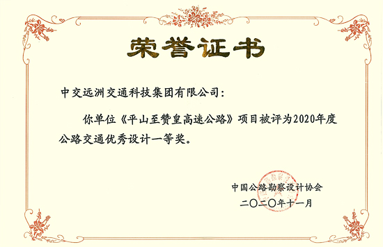 平山至贊皇高速公路項(xiàng)目被評為2020年度公路交通優(yōu)秀設(shè)計(jì)一等獎